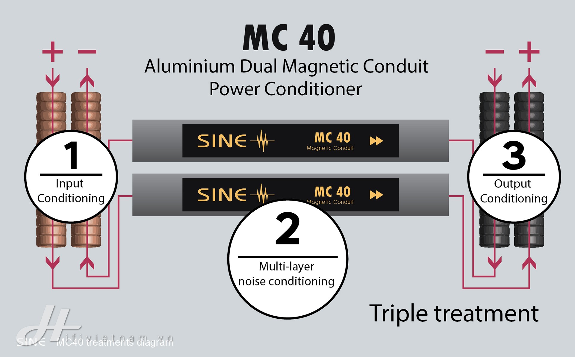 Trung tâm của dòng sản phẩm này là công nghệ Magnetic Conduit (MC) – giải pháp mà SINE mô tả như một “đường dẫn từ tính” giúp kiểm soát và làm sạch dòng điện xoay chiều.