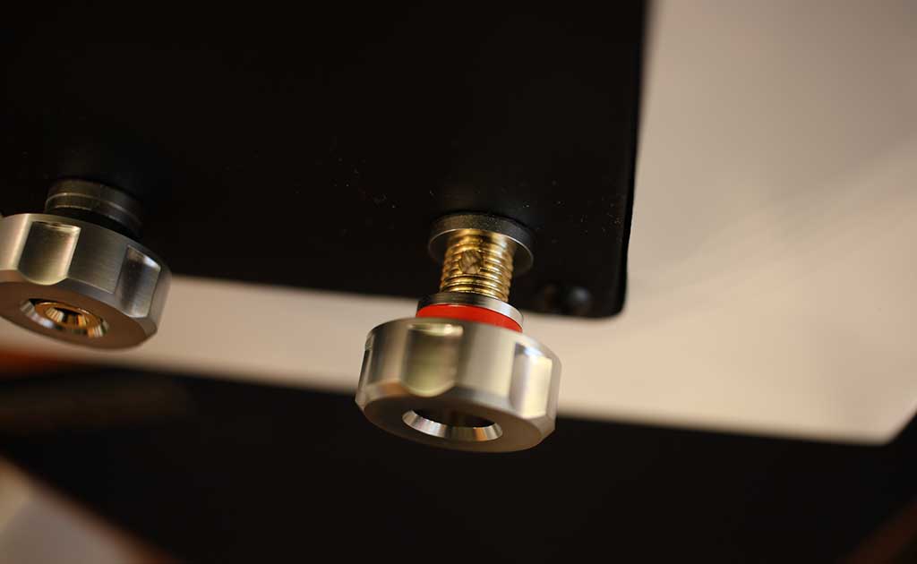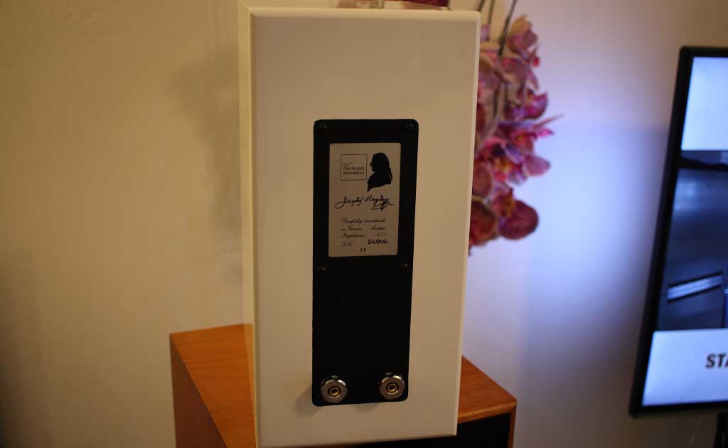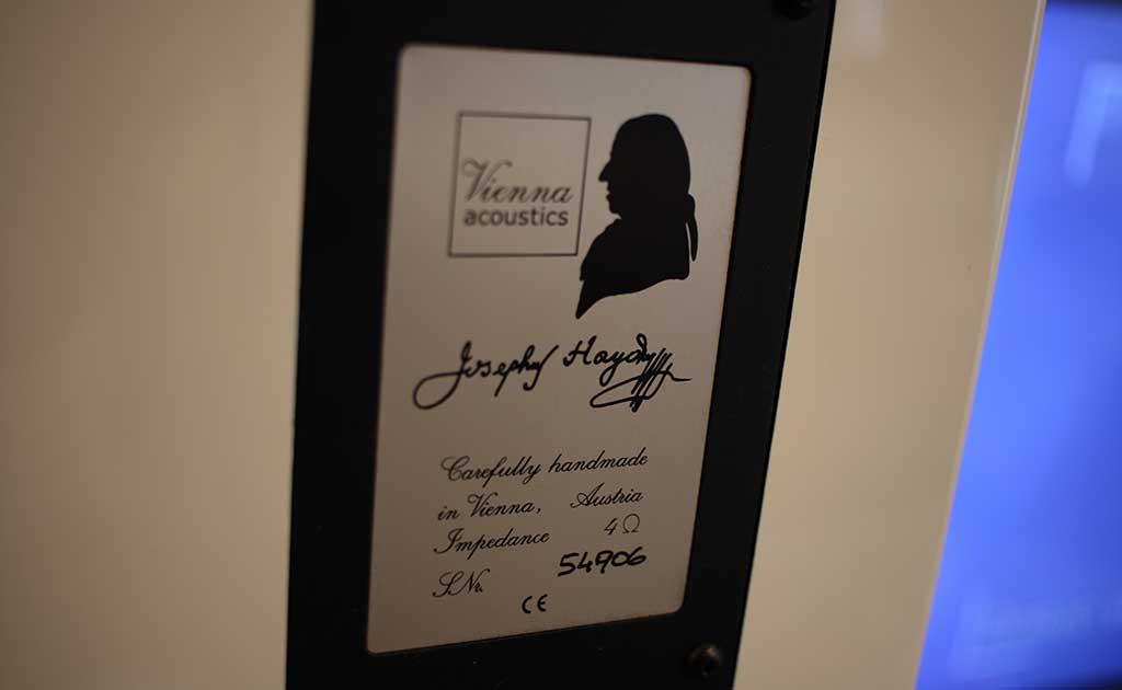 Khi nhìn từ phía sau, Haydn Grand SE có một tấm kim loại lớn màu đen, bên trên có logo hãng sản xuất Vienna Acoustic, một số thông số kỹ thuật cơ bản, chữ ký của nhà soạn nhạc Haydn và số sê-ri được viết bằng tay rất thanh lịch. Khác với những hãng sản xuất khác, Vienna Acoustics không sử dụng các loại cọc loa thương mại có trên thị trường mà sản xuất riêng. Cụm cặp cọc loa được bố trí nằm tách biệt phía bên dưới, tương thích cả đầu giắc bắp chuối lẫn càng cua với tiếp điểm được mạ vàng sáng bóng.