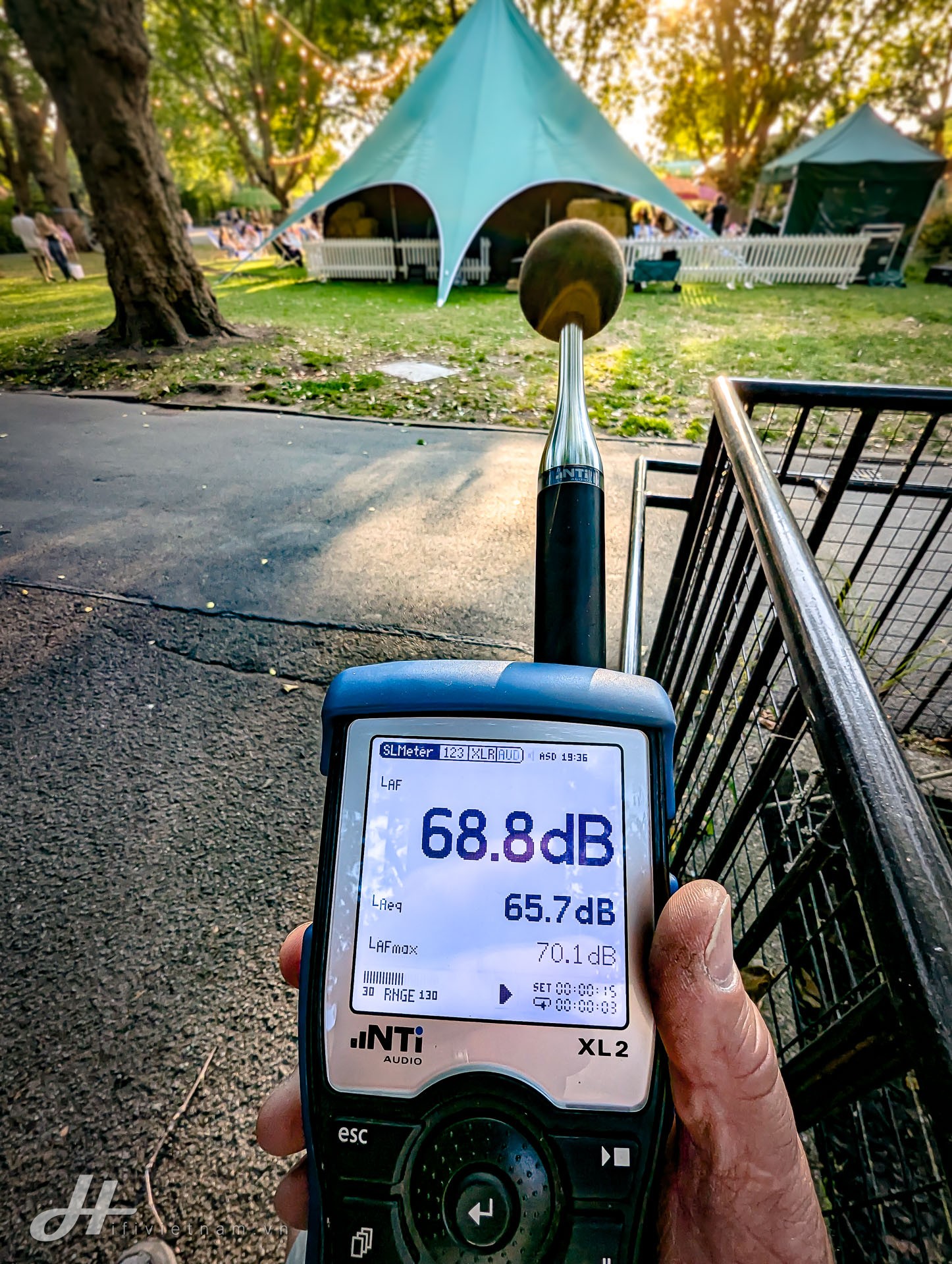 - LAeq: 65.7 dB – Đây là mức âm trung bình theo thời gian, chỉ số quan trọng nhất khi đánh giá tác động lâu dài đến môi trường xung quanh. Con số này thấp hơn rất nhiều so với các sự kiện âm nhạc thông thường (90–100 dB LAeq).