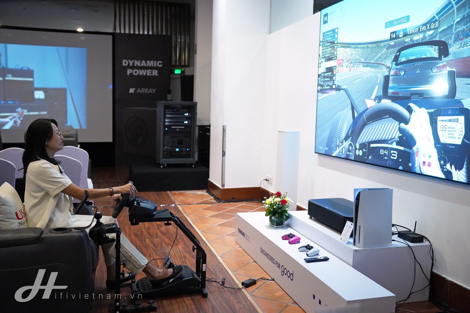 Phối ghép được kết hợp cùng dòng loa active không dây Premium của Piega, máy chơi game Playstation V và bộ vô-lăng Logitech mang đến những trải nghiệm “đua xe” hết sức chân thật và thú vị.