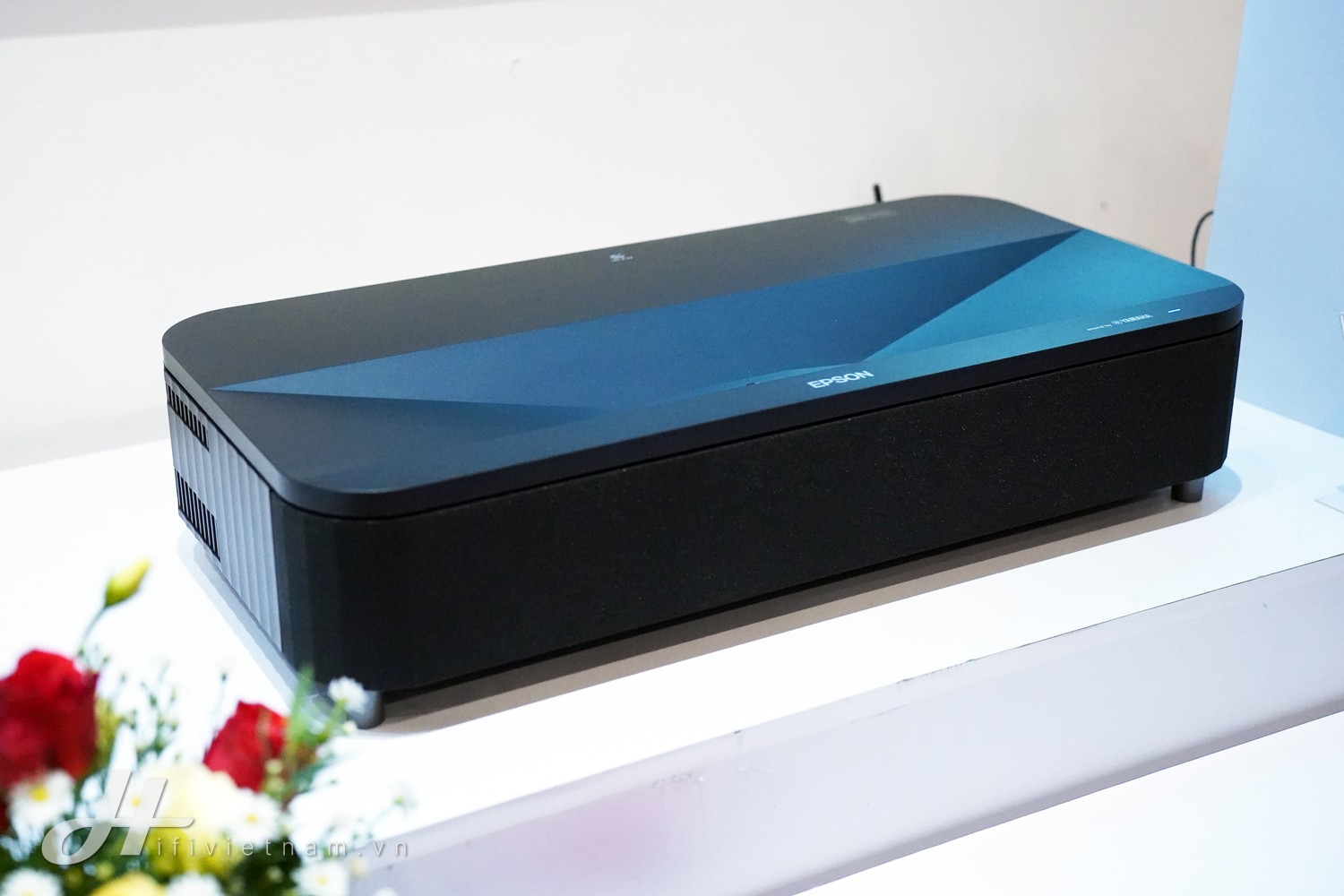 Bên cạnh không gian dành cho mẫu máy chiếu đầu bảng EH-QL3000W, khu vực thu hút sự quan tâm không kém của các khách mời là Epson EH-LS800B -Mẫu máy chiếu siêu gần (ultra-short throw) sử dụng nguồn sáng laser, tích hợp hệ điều hành thông minh hướng đến việc thay thế TV truyền thống.