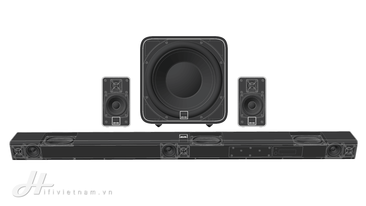 Điểm cộng lớn là hệ thống đi kèm subwoofer không dây R|Evolution (12”, 600W), và đặc biệt là tùy chọn chạy dual-sub – Một điều hiếm thấy ở soundbar, nhưng lại cực kỳ quan trọng để kiểm soát bass đều trong phòng.
