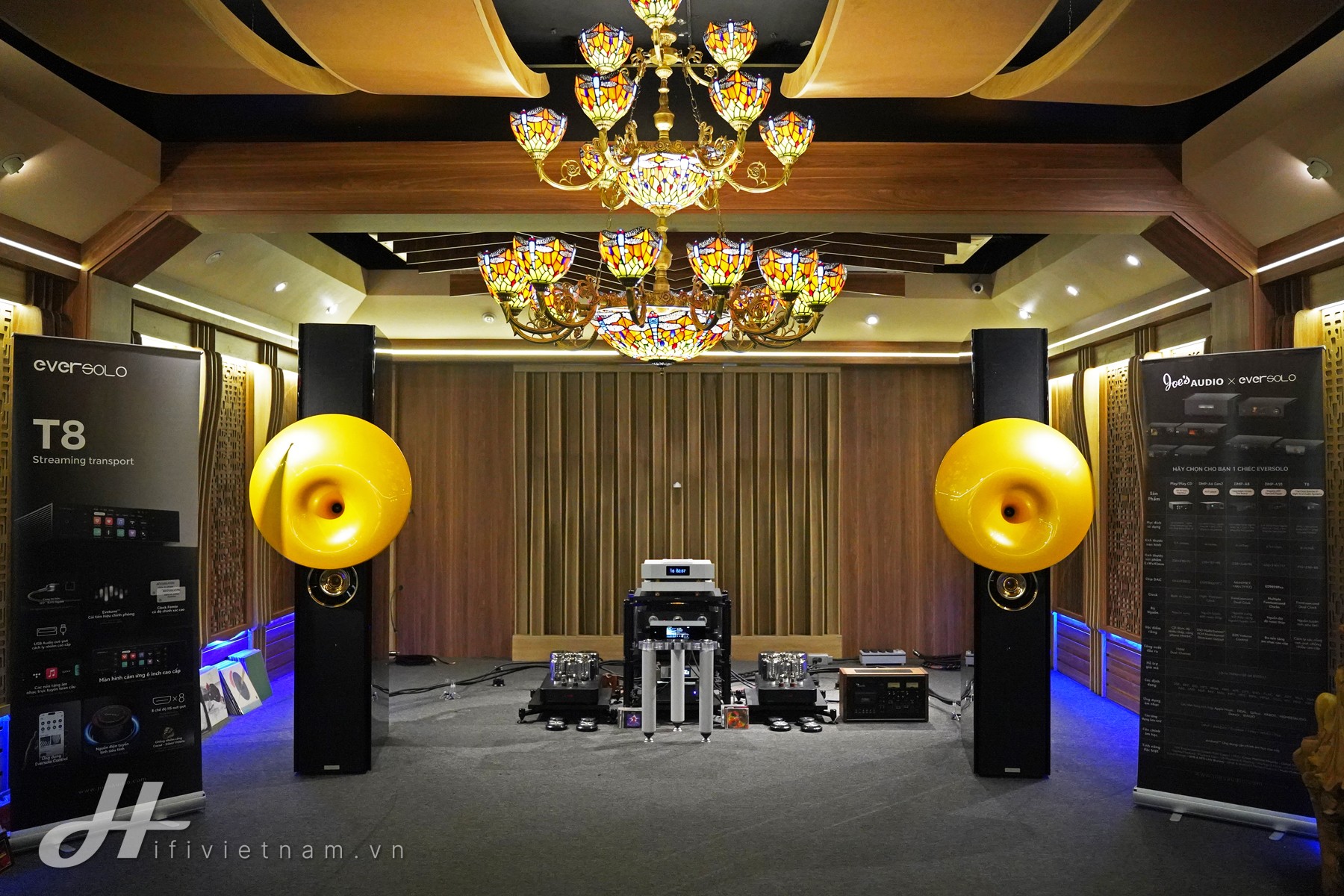 Không cần phải nói quá nhiều về không gian demo đặc biệt này; nhờ thiết kế mạch đèn triode/pentode của Ayon, lần đầu tiên người chơi có thể thưởng lãm một Acapella hoàn toàn lột xác với bass sâu, mạnh mẽ cùng dải cao tinh tế… Nói cách khác, đây không phải là hệ thống để “che khuyết điểm”, mà là hệ thống để tái hiện trung thực tuyệt đối tất cả những gì được phát trên nguồn âm. Xin chúc mừng Eversolo T8 và Joe’s Audio.