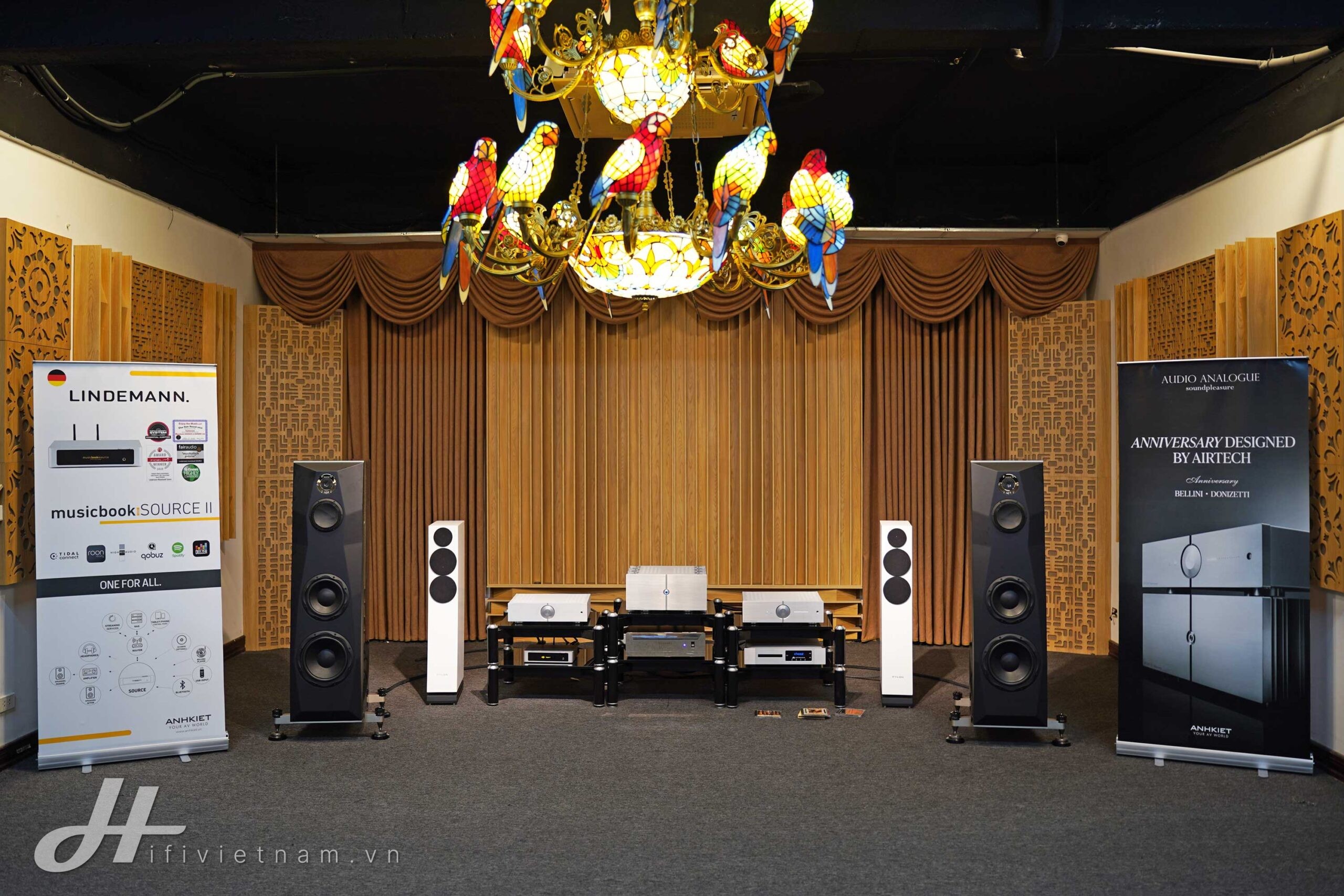 Đến với Audio Connection, Anh Kiệt AV mang đến thương hiệu rất đỗi quen thuộc đối với các audiophile Việt Nam bởi chất âm nồng nàn trữ tình. Bộ đôi pre-power phiên bản kỷ niệm Anniversary từ Italia – Audio Analogue – sẽ được kết hợp cùng mẫu loa Alare Remiga 2 phiên bản treb kim cương. Chi tiết phối ghép bao gồm: