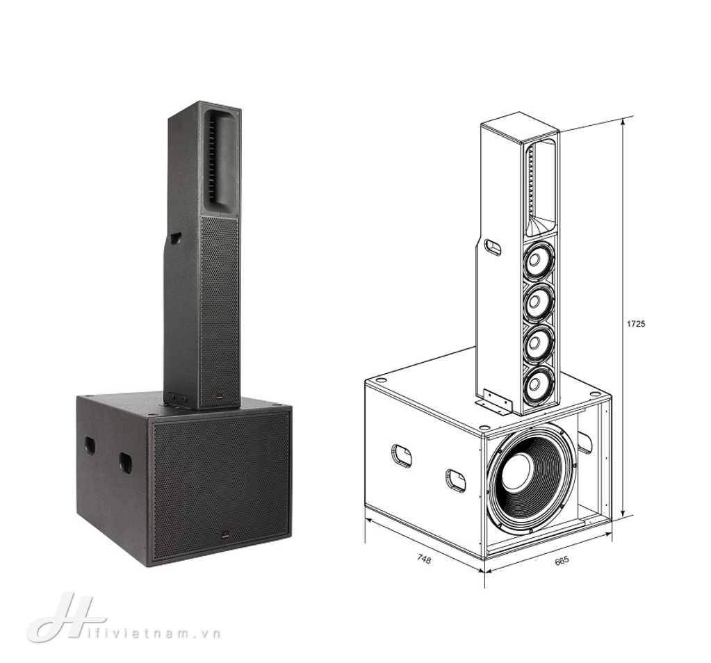 Cao cấp hơn trong cùng series, EUROTECH PREMIERE 1846 sở hữu công suất ấn tượng 2800W RMS, sử dụng hệ thống driver lớn gồm subwoofer 18”, 4 woofer 6.5” và 2 driver HF 3.5”.