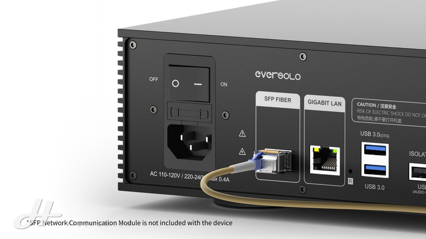 Trong thời đại streaming, mạng Wi-Fi và Ethernet là nguồn gây nhiễu lớn. T8 đột phá với cổng SFP Optical (cổng quang) chuyên dụng. Kết nối quang học này cách ly hoàn toàn thiết bị khỏi nhiễu điện của hệ thống mạng, giúp tín hiệu Digital đạt được độ tinh khiết tối đa.