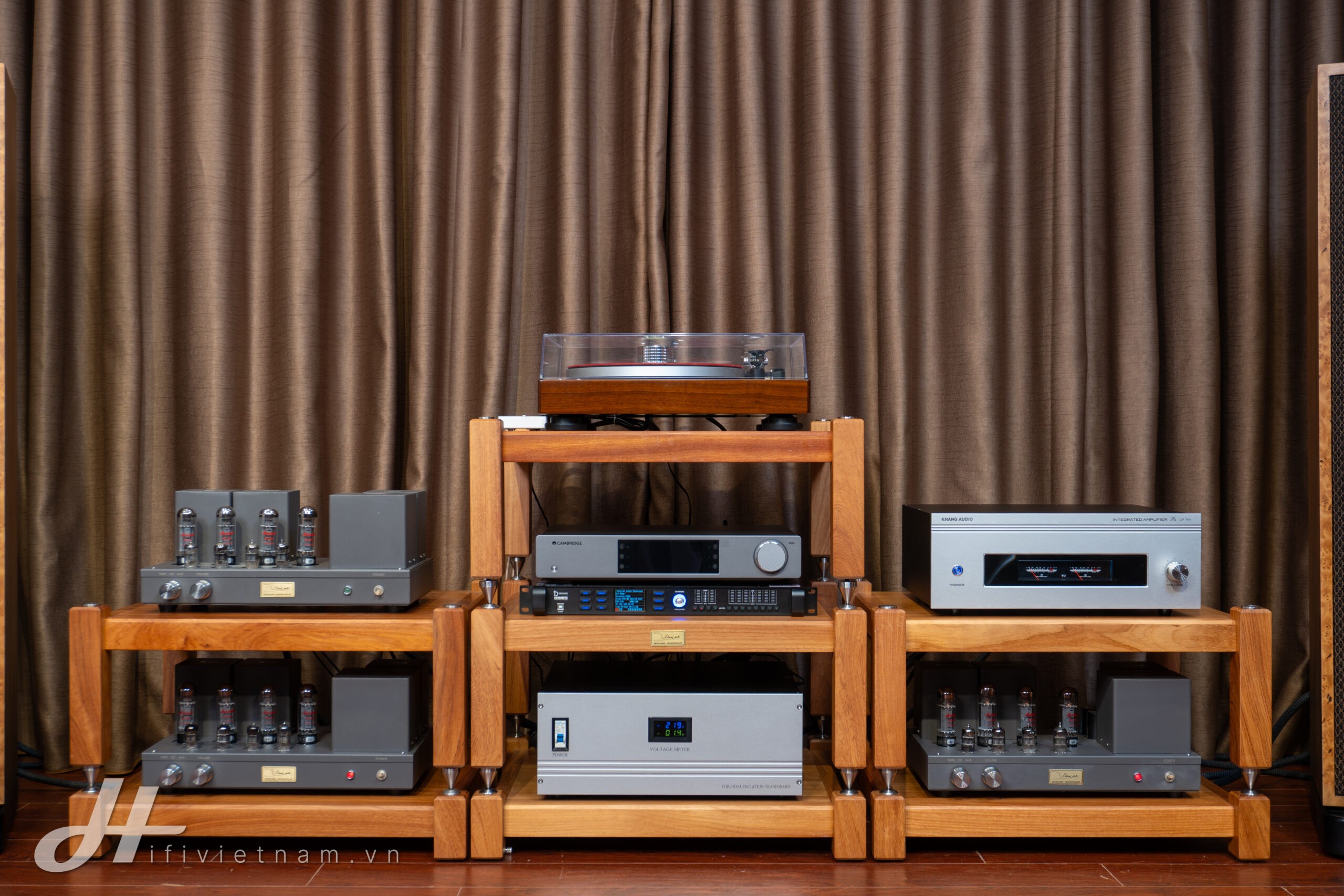 Trái tim của hệ thống là dàn củ loa huyền thoại từ thương hiệu RFT của Đức. Để khai thác tối đa tiềm năng của chúng, Khang Audio đã tự tay chế tác một hệ thống khuếch đại hybrid “may đo”: 3 chiếc amply đèn EL34 Push-Pull mang lại sự ngọt ngào cho dải cao, trung và trầm, trong khi amply bán dẫn Pa01 mạnh mẽ kiểm soát dải siêu trầm với uy lực và độ chính xác tuyệt đối.