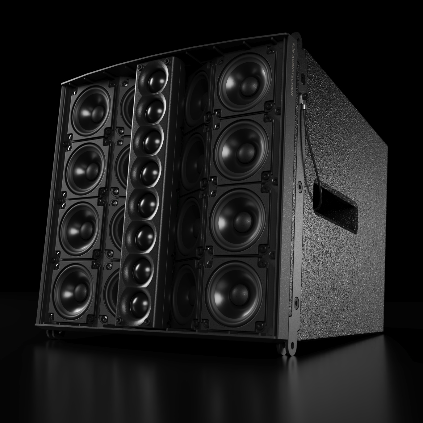 Thùng loa được làm từ gỗ ép birch chất lượng cao và phủ Polyurea, đảm bảo độ bền chắc và khả năng chịu lực trong các điều kiện khắc nghiệt của những ứng dụng quy mô lớn. Tính mô-đun và hệ thống treo 3 điểm cho phép dễ dàng mở rộng và tích hợp vào các hệ thống hiện có.