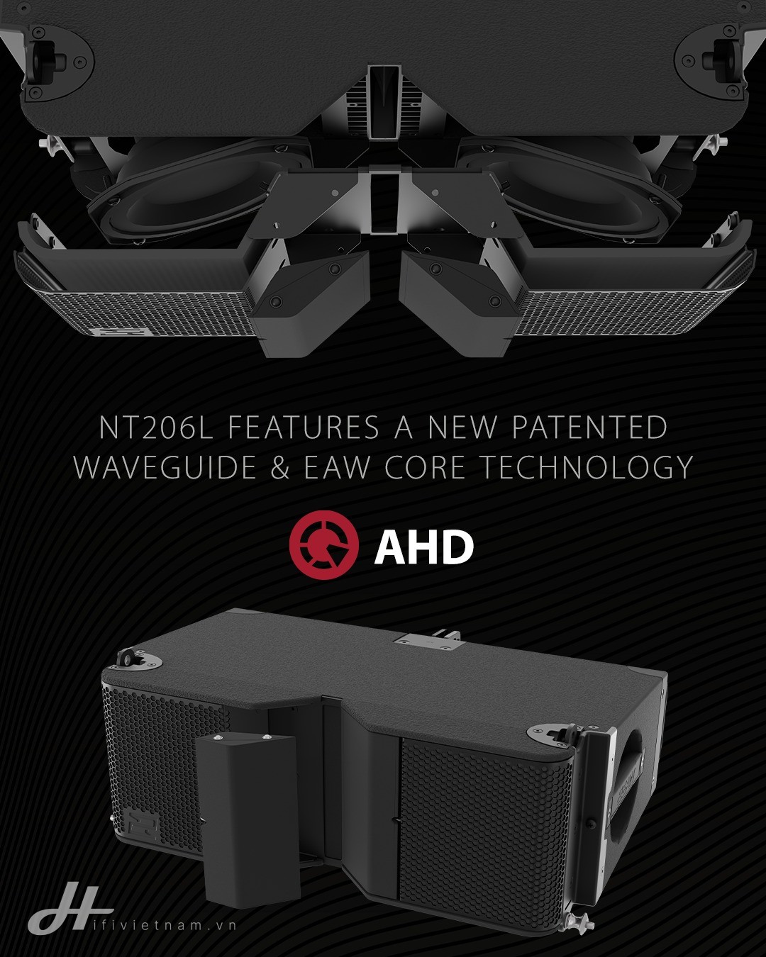 Một trong những cải tiến đáng chú ý nhất trên NT206L là công nghệ AHD (Adjustable Horizontal Directivity) cho phép người dùng tùy chỉnh góc phủ âm ngang với 4 cấu hình khác nhau chỉ bằng thao tác cơ học trực tiếp trên loa. Kết hợp với ống dẫn sóng sử dụng công nghệ Focusing độc quyền của EAW, NT206L mang lại khả năng kiểm soát âm thanh chính xác, đồng đều và tối ưu hơn trong nhiều điều kiện không gian khác nhau.