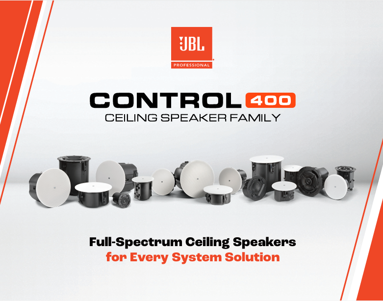 Song hành cùng ampli Crown là dòng loa âm trần JBL Professional Control 400 Series, đại diện cho thế hệ loa lắp đặt mới với sự cải tiến toàn diện về hiệu suất và khả năng phủ âm.
