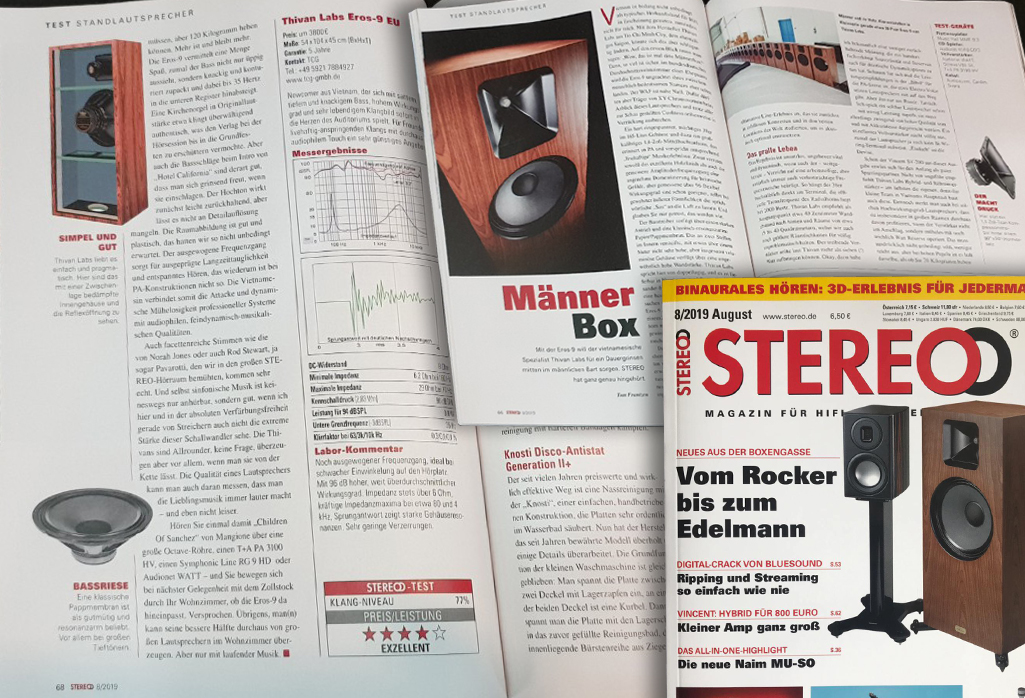 Eros-9 là mẫu loa đầu tiên được phát triển trong dòng loa Eros năm 2016. Năm 2019, mẫu loa Eros 9 Anniversary (phiên bản 2018) đã được tạp chí âm thanh LP tại Đức trao tặng danh hiệu “Best of LP 2029”. Đây cũng là mẫu loa thành công của ThivanLabs tại Đức và Châu Âu với sự yêu thích rất lớn của người yêu nhạc.